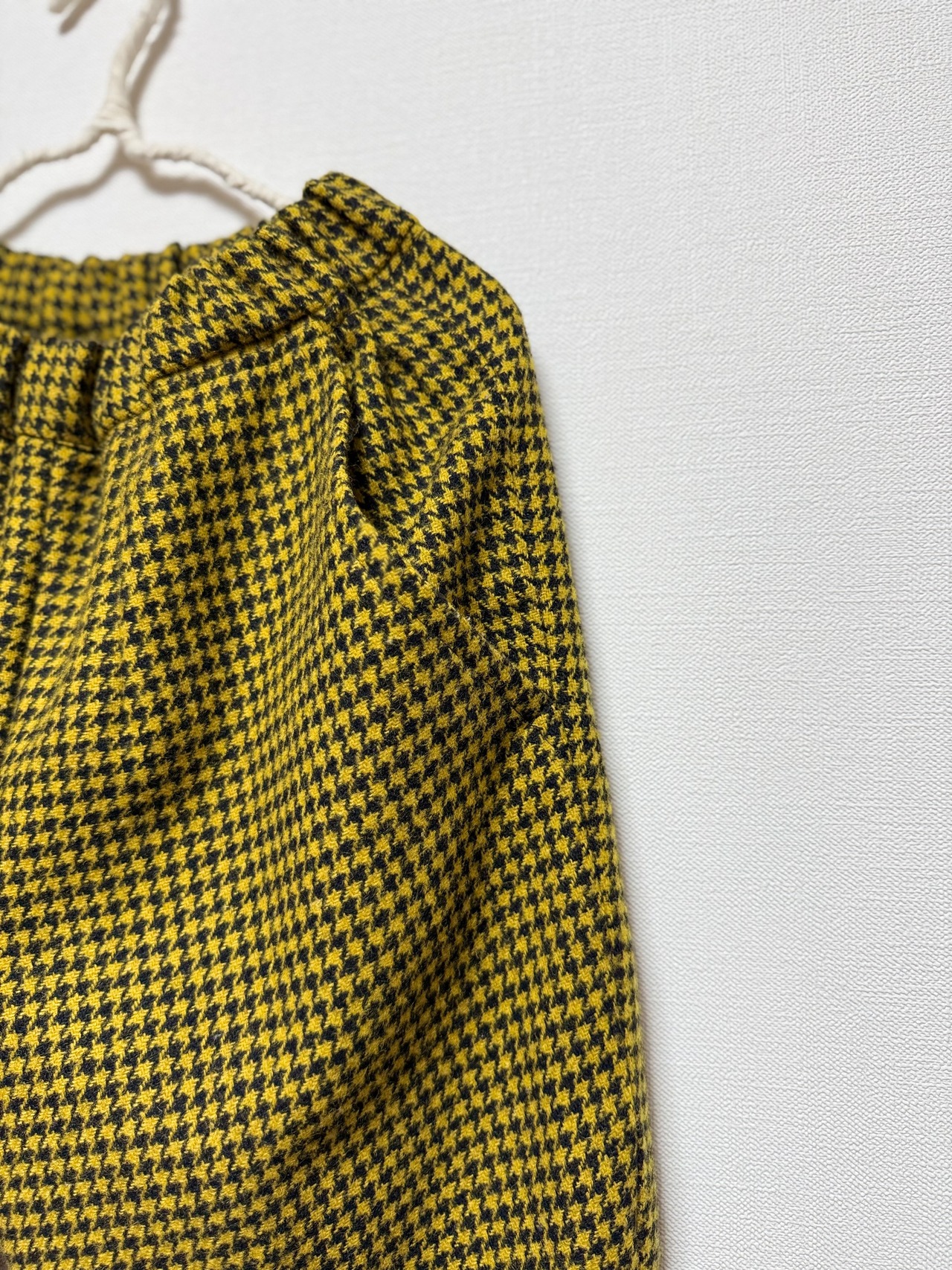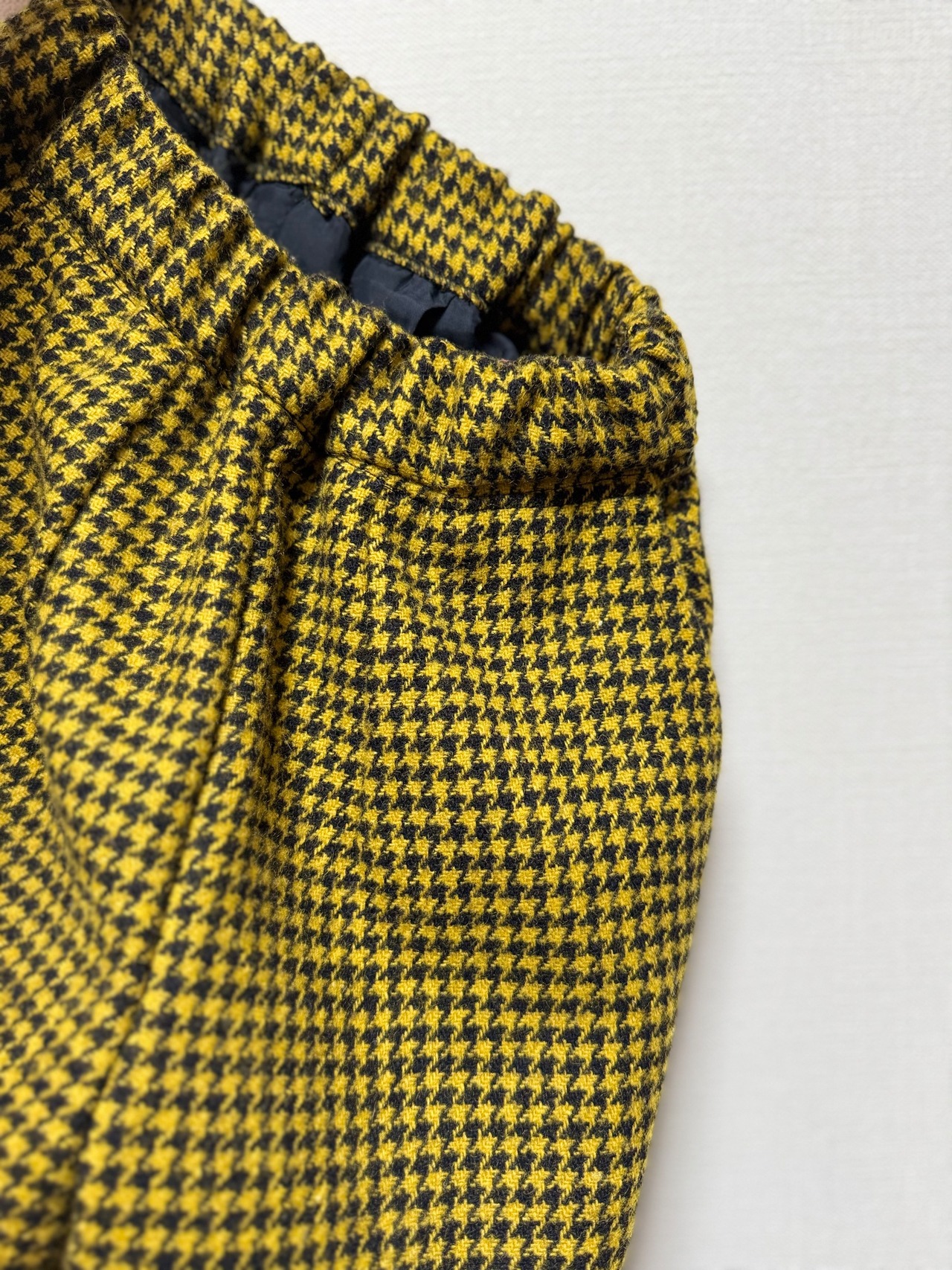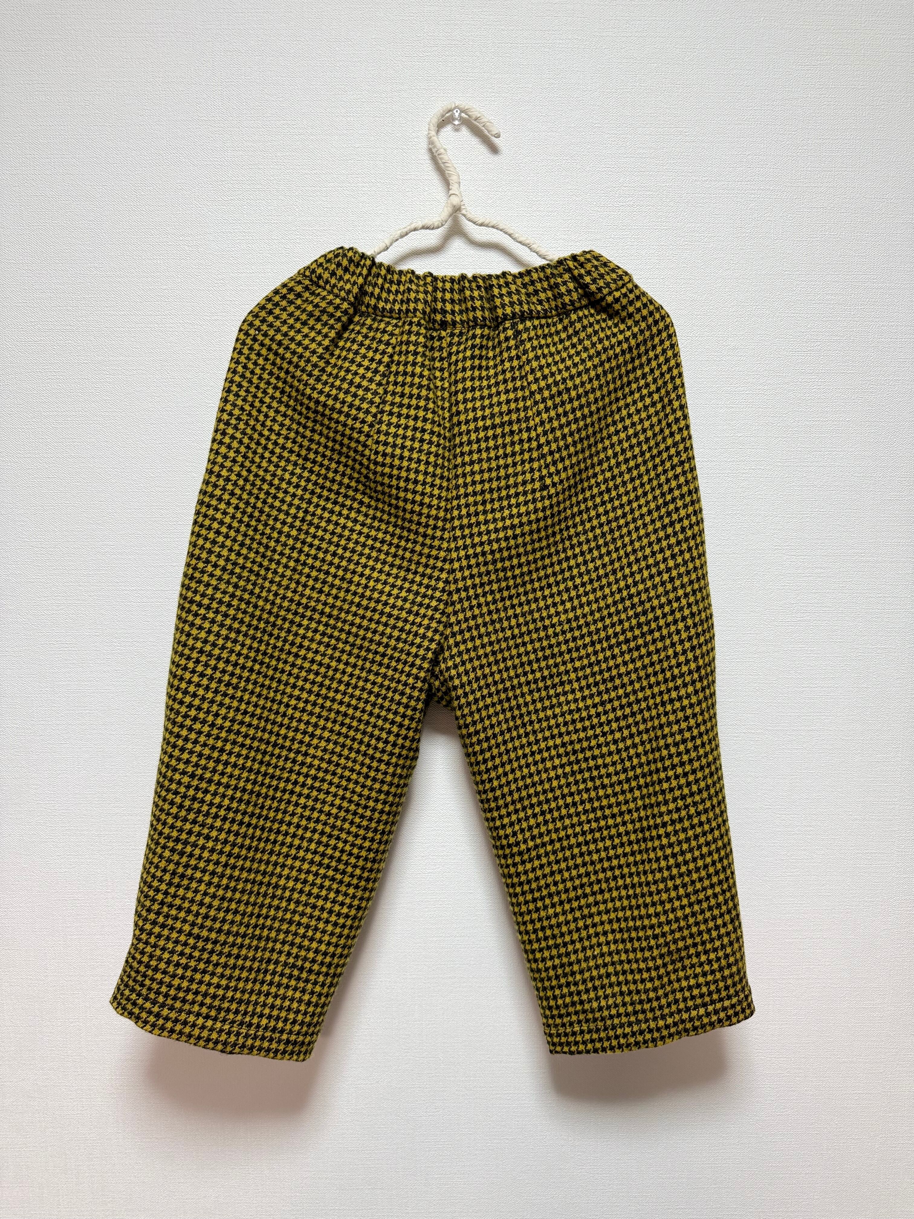 千鳥格子のウール混ツイードで、110サイズのお子さま用パンツを仕立てました。
