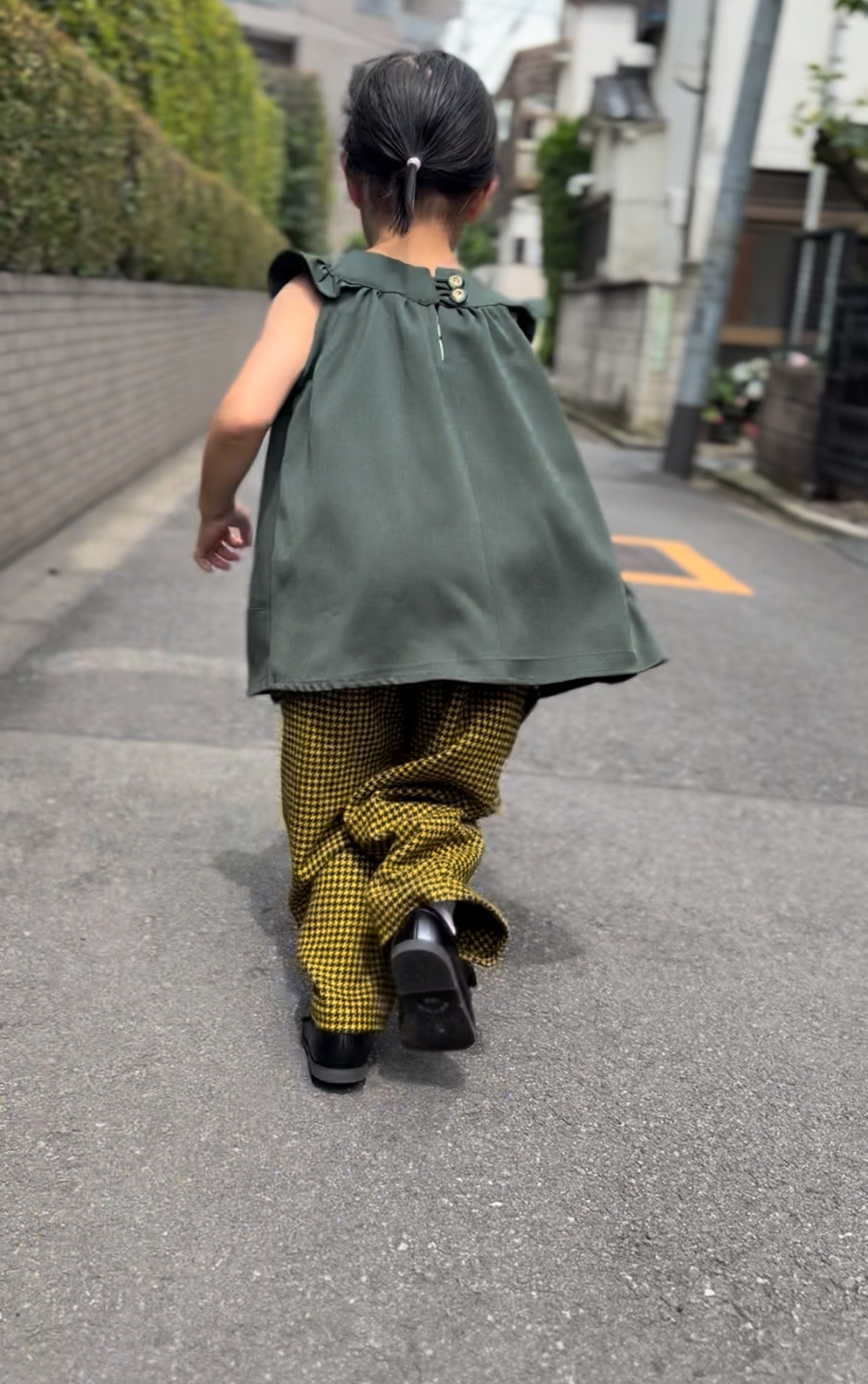 からし色の千鳥、あたたかく歩く。原型パンツ