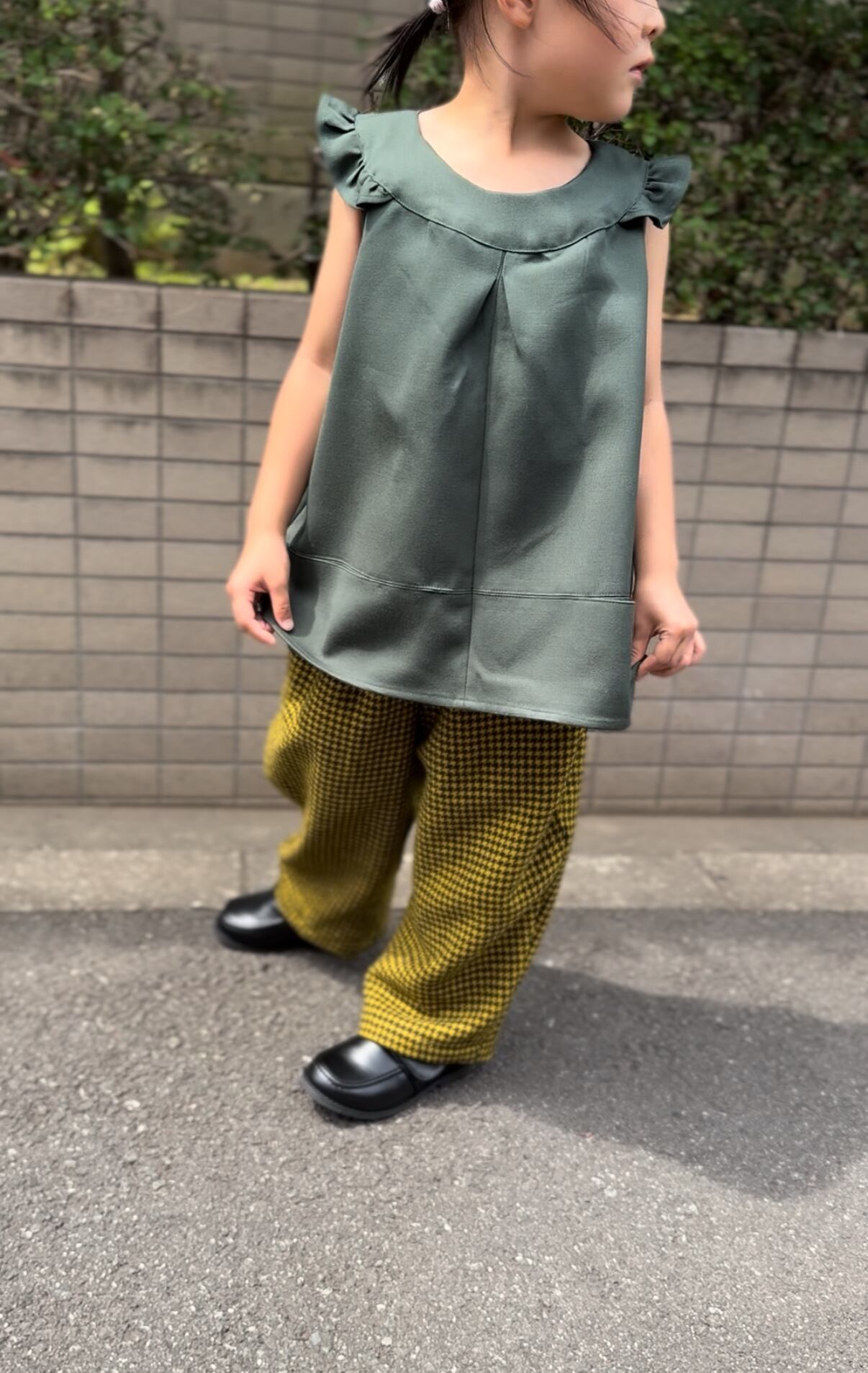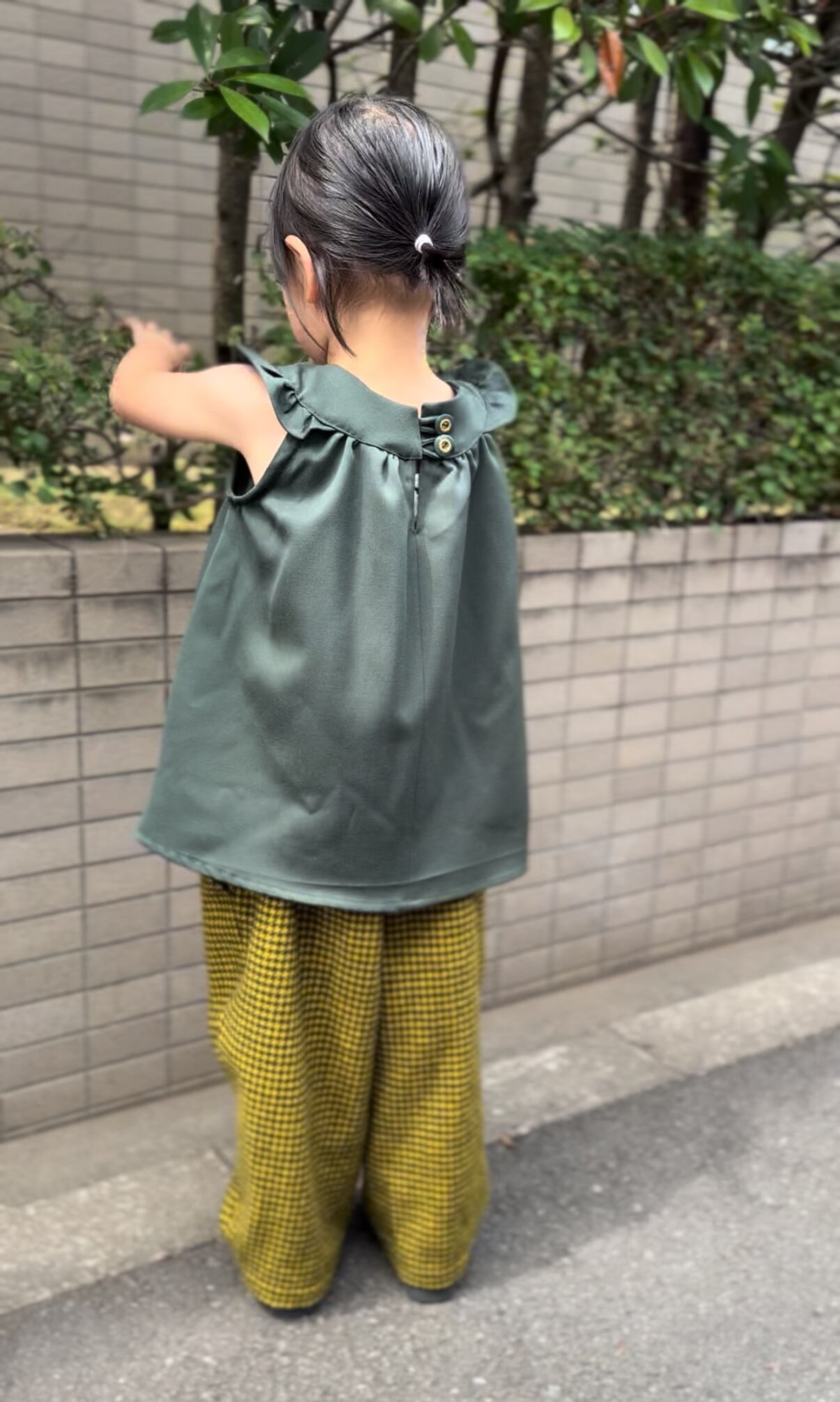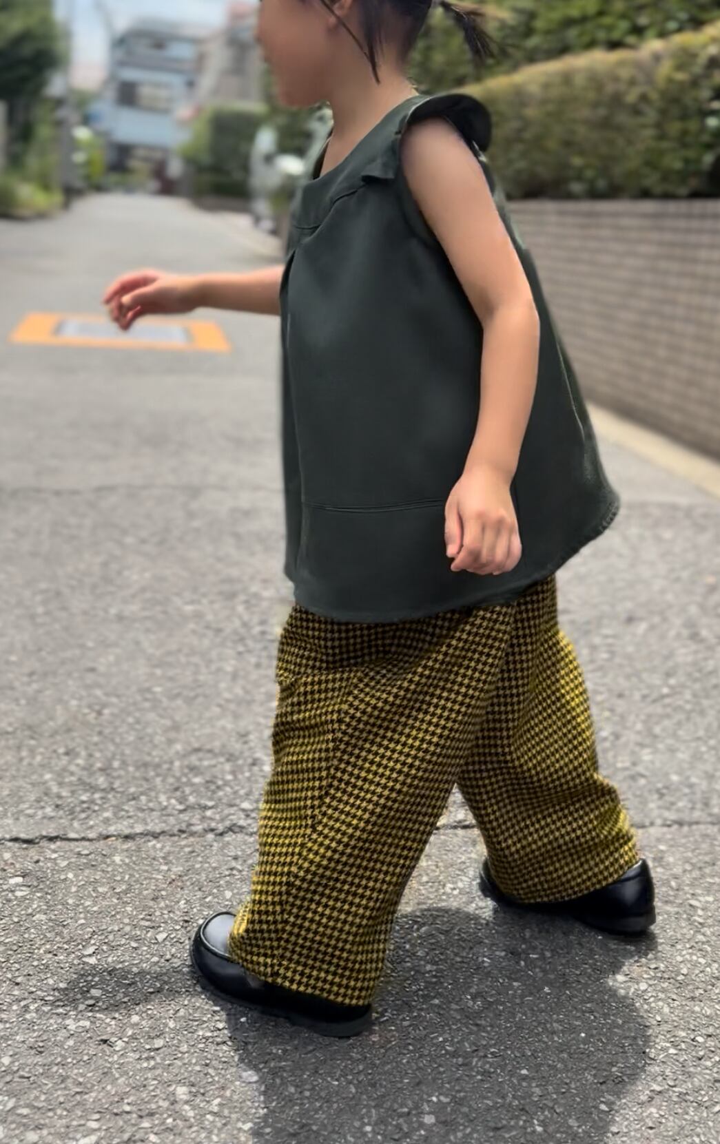 大人のジャケットから生まれ変わったノースリーブのトップスです。