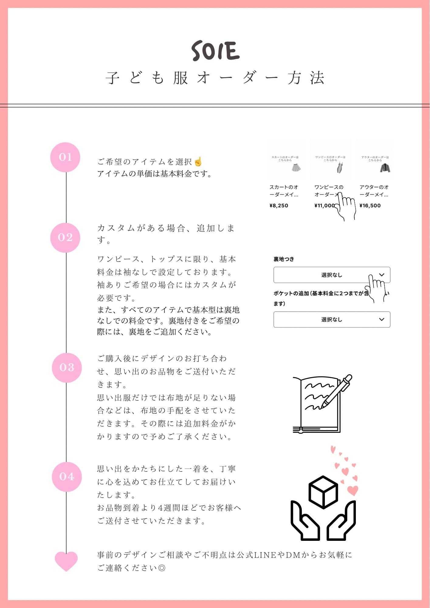 思い出服だけでは布地が足りない場合などは、布地の手配をさせていただきます。その際には追加料金がかかりますので予めご了承ください。